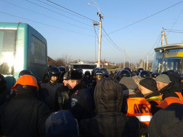 Om kwart over drie 's middags waren de demonstranten niet alleen in aantal gegroeid, maar zouden ze op 300 meter van de ingang staan. Er zouden inmiddels zo'n duizend auto's zijn gearriveerd. De oppositieleiders Arseni Jatsenjoek, Vitali Klitsjko en Oleh Tiahnibok bevinden zich onder de demonstranten. ''We hebben nog 300 meter te gaan tot aan de overwinning'', zei Tiahnibok om de demonstranten aan te moedigen.