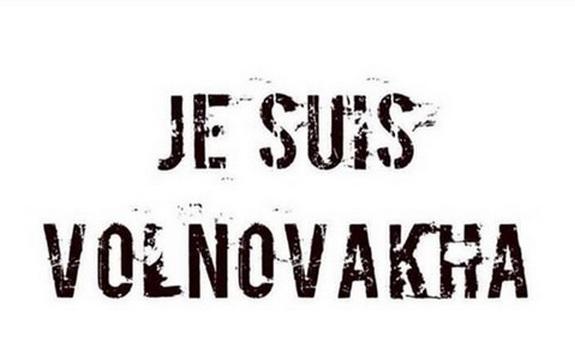 Met de twittercampagne #JeSuisVolnovacha wordt verwezen naar #JeSuisCharlie, waarmee internationaal de verontwaardiging wordt uitgedrukt over de aanslag vorige week op de redactie van het satirische weekblad Charlie Hebdo in Parijs.